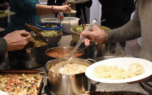 We gather at 6 PM to pray over the food before enjoying an hour of fellowship and a meal. Our volunteers generously give their time and make us some amazing meals, which are always free. Rolls and desserts are always a welcome donation.